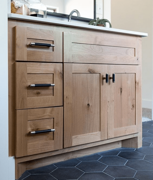 Natural Tone with satin sheen finish, Carcass constructed of Maple or Birch 3/4 thick for a strong stable platform, Poplar Wood for all rail and stiles , customizable up to 60" wide , 21" depth, 30" height , does not come with top but can be ordered. Soft Close drawer slides for sleek and stealth performance. Drawer and Door pulls Hardware not included but can be added from store (pre-drilled if choosing in stock hardware with your order for easy installation).